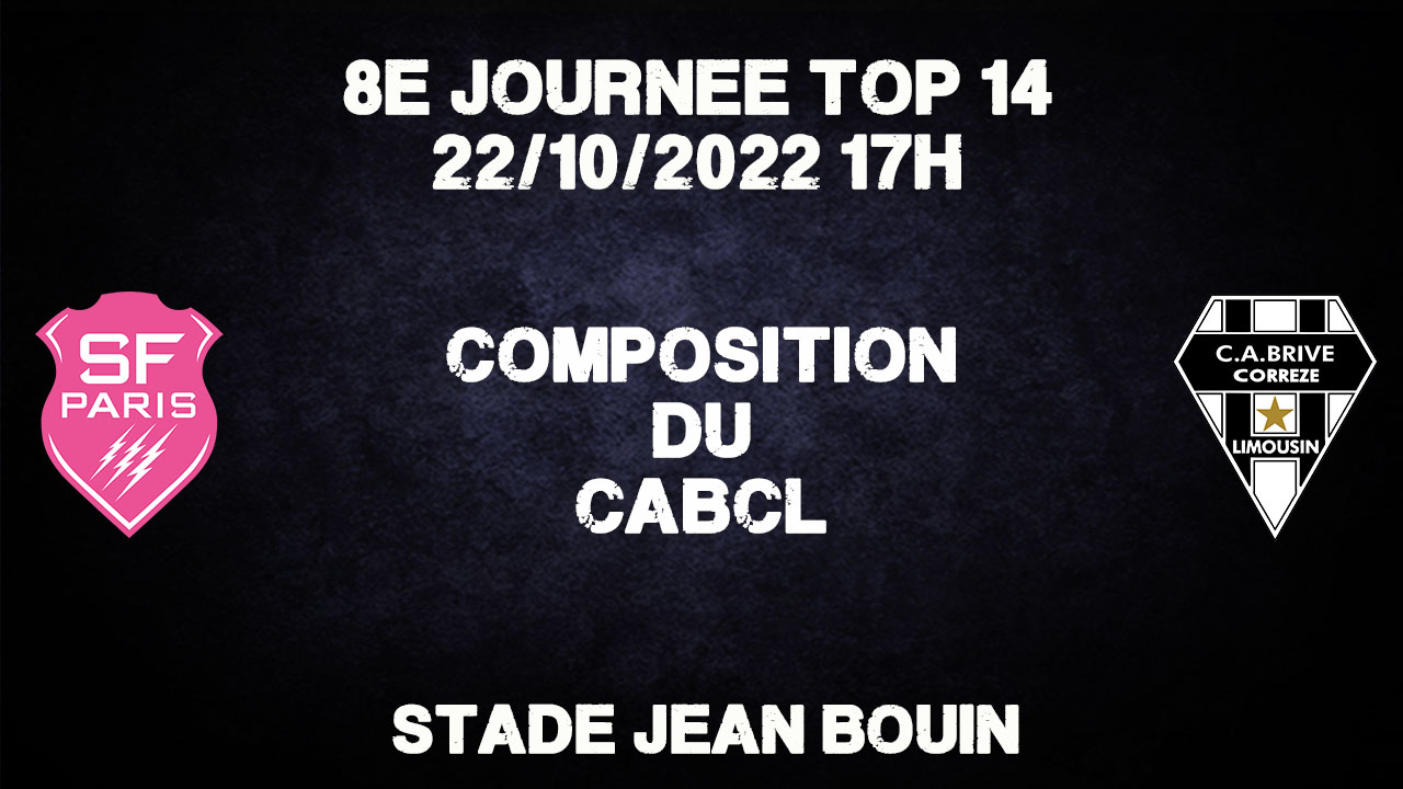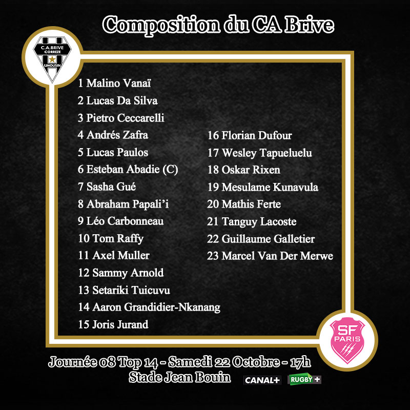 Voici le XV de départ du CA Brive pour le déplacement au Stade Français :