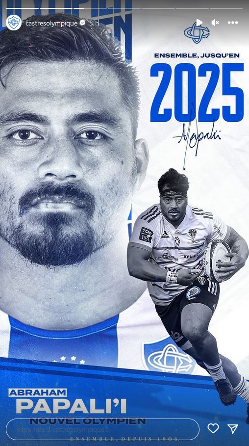 Castres officialise l'arrivée d'Abraham Papali'i jusqu'en 2025