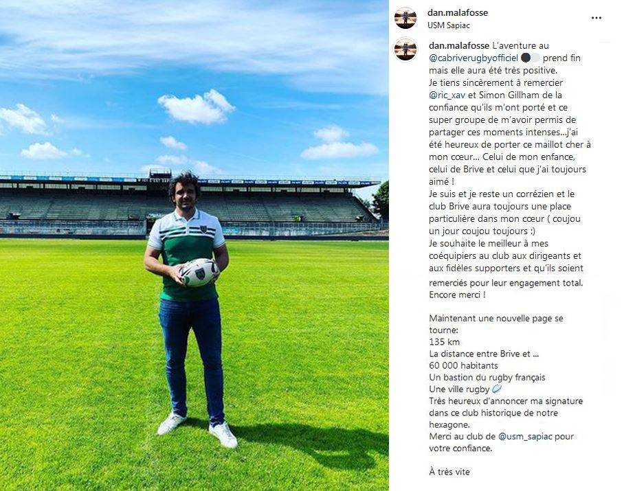 Mike Tadjer va accueillir deux anciens brivistes à Sapiac : après Quentin Delord, c'est donc au tour de Dan Malafosse de rejoindre l'USM. En difficulté à Pau, le 2e/3e ligne s'est relancé à 2 reprises à Brive sur les saisons 2019/2020 et 2020/2021. Après cette expérience en Top 14 au sein de son club formateur, Malafosse retrouve la Pro D2 où cela avait bien marché pour lui du côté de Mont de Marsan durant 2 saisons (45 matchs, 35 titularisations, 5 essais).