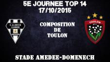 Le Top 14 est enfin de retour ! Pendant que la Coupe du Monde dispute les quarts de finale, les clubs français entament la cinquième journée. Pour une affiche de gala, Brive reçoit Toulon avec la possibilité d'intégrer le top 6 en cas de victoire. Ma...