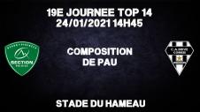 En étant dans sa deuxième partie, le Top 14 va voir débuter une intense lutte pour le maintien, pour éviter la place de barragiste. Les duels directs sont nombreux en ce début d'année. Pau reçoit Brive et le vainqueur va respirer un peu mieux en ba...