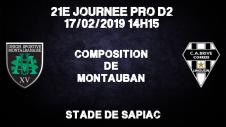 La 21e journée va se terminer avec la réception de Brive par Montauban. Etrillé la semaine passée sur le terrain de Provence, l'USM va vouloir relever la tête et montrer un autre visage face à une équipe du CAB en course pour les phases finales. L...