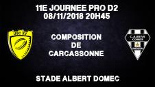 La onzième journée s'ouvre sur un match entre deux équipes du haut de tableau. Toujours solide à domicile, Carcassonne reçoit le leader Brive qui reprend la route après deux réceptions. Son fauteuil de leader sera testé au pied des remparts de la c...